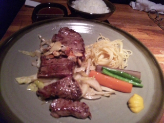 ステーキ&ハンバーグセット(1380円)。サラダと味噌汁がついてます。